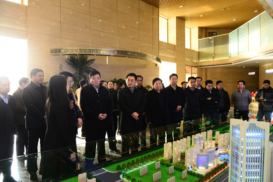 在嘉億互聯(lián)網(wǎng)大廈項目一樓大廳,省委常委、常務副省長翁杰明一行聽取了新鄉(xiāng)市特色商務區(qū)、區(qū)域經(jīng)濟發(fā)展優(yōu)勢以及嘉億互聯(lián)網(wǎng)大廈的運營發(fā)展等相關情況匯報。