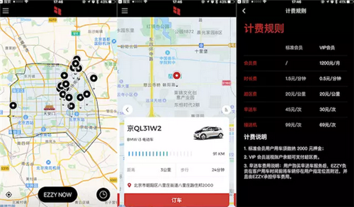 EZZY 的實際體驗是這樣的:用戶在用駕照注冊了賬戶之后,EZZY 的 App 上會顯示你附近有沒有可以提供服務(wù)的車,根據(jù)導(dǎo)航找到可能停在任意停車位的 EZZY 分時租賃轎車之后直接用手機 App 開車門,之后就是隨意駕駛了。駕駛結(jié)束之后也可以隨便停,然后用手機結(jié)賬,鎖門走人。