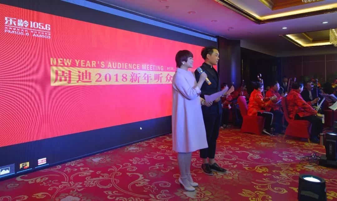 “我們的女神叫小周,美麗大方人優(yōu)秀。百萬戲迷手挽手,你主持的節(jié)目愛不夠,讓我們舉起歡慶的美酒,祝節(jié)目越辦越好與時(shí)俱進(jìn)競風(fēng)流……”伴隨著聽眾張學(xué)紅原創(chuàng)戲歌《我們的女神》,周迪2018新年聽眾見面會(huì)正式拉開帷幕。