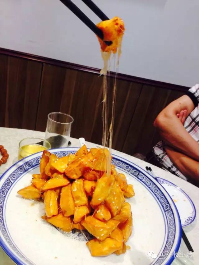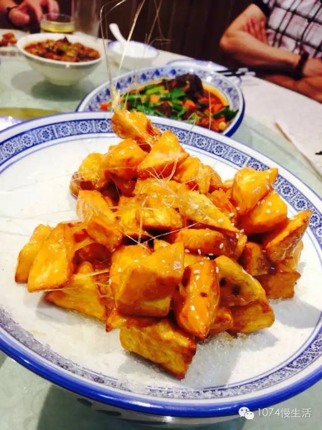 吃完了硬菜,總需要來道餐后甜品吧?拔絲類的菜品就算是咱們中式菜中的甜品了,看這拔絲的效果就知道廚師的手藝如何,長長的拔起,再往冷水里沾一沾,好吃好玩兒,吃出了童年的感覺??!