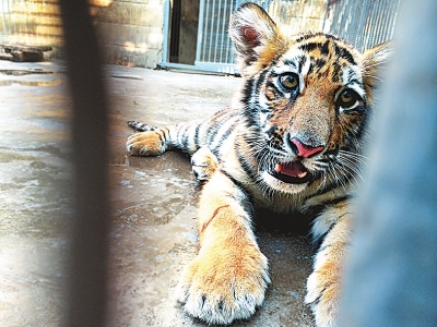 我省成功偵破一起非法收購、運輸、出售東北虎特大團伙犯罪案件。8月19日,在三門峽市野生動物救護中心,記者見到了這只被解救的5個月左右的東北虎幼崽(如圖)。在工作人員精心護理下,這只小虎身體狀況良好,一天能吃4斤牛肉,對著記者的相機瞪大眼睛充滿好奇。