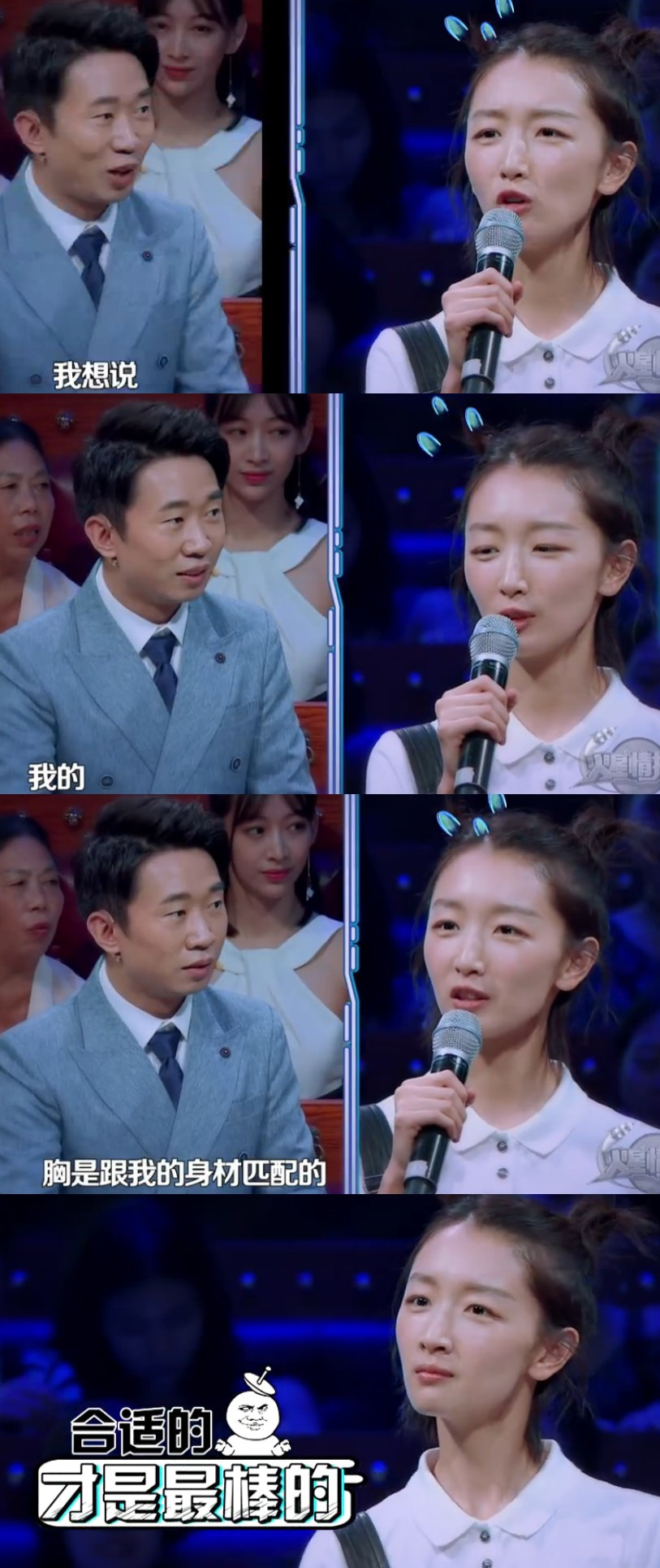 節(jié)目的某一環(huán)節(jié),為了回饋粉絲對于火星情報局的愛,作為情報局的郵遞員楊迪讀了一封粉絲寫給周冬雨的信,第一句話就直戳了周冬雨的要害:“首先作為你的粉絲,我們真的不嫌棄你的胸小,哈哈哈”,這個話題尷尬得讓人覺得楊迪就是要搞!事!情!