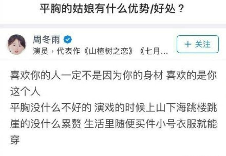 周冬雨又又叒叕被嫌棄胸小了。
