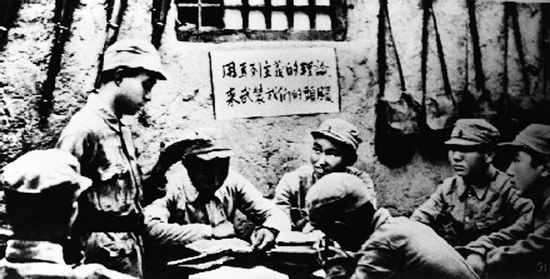 1942年,延安,戰(zhàn)士們在進行整風學習 本版圖片均來自中國共產黨新聞網