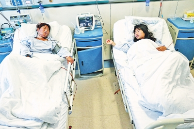 昨天下午4點(diǎn)多,當(dāng)記者在鄭大一附院肝移植病區(qū)見(jiàn)到張文亞和李?lèi)?ài)云時(shí),兩人正躺在床上輸液。