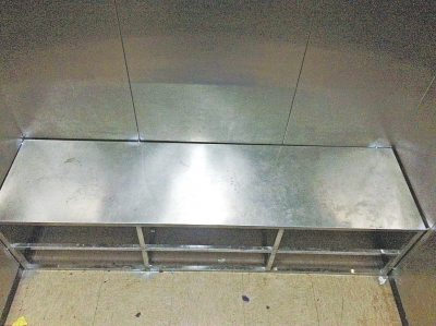 昨天,記者來到李先生所在小區(qū)52號樓,該樓一共3部電梯,其中一部顯示正在維修,而另一部電梯內(nèi),緊挨梯廂里側,焊接了一個寬約30厘米的座椅。第三部內(nèi)尚未安裝座椅。
